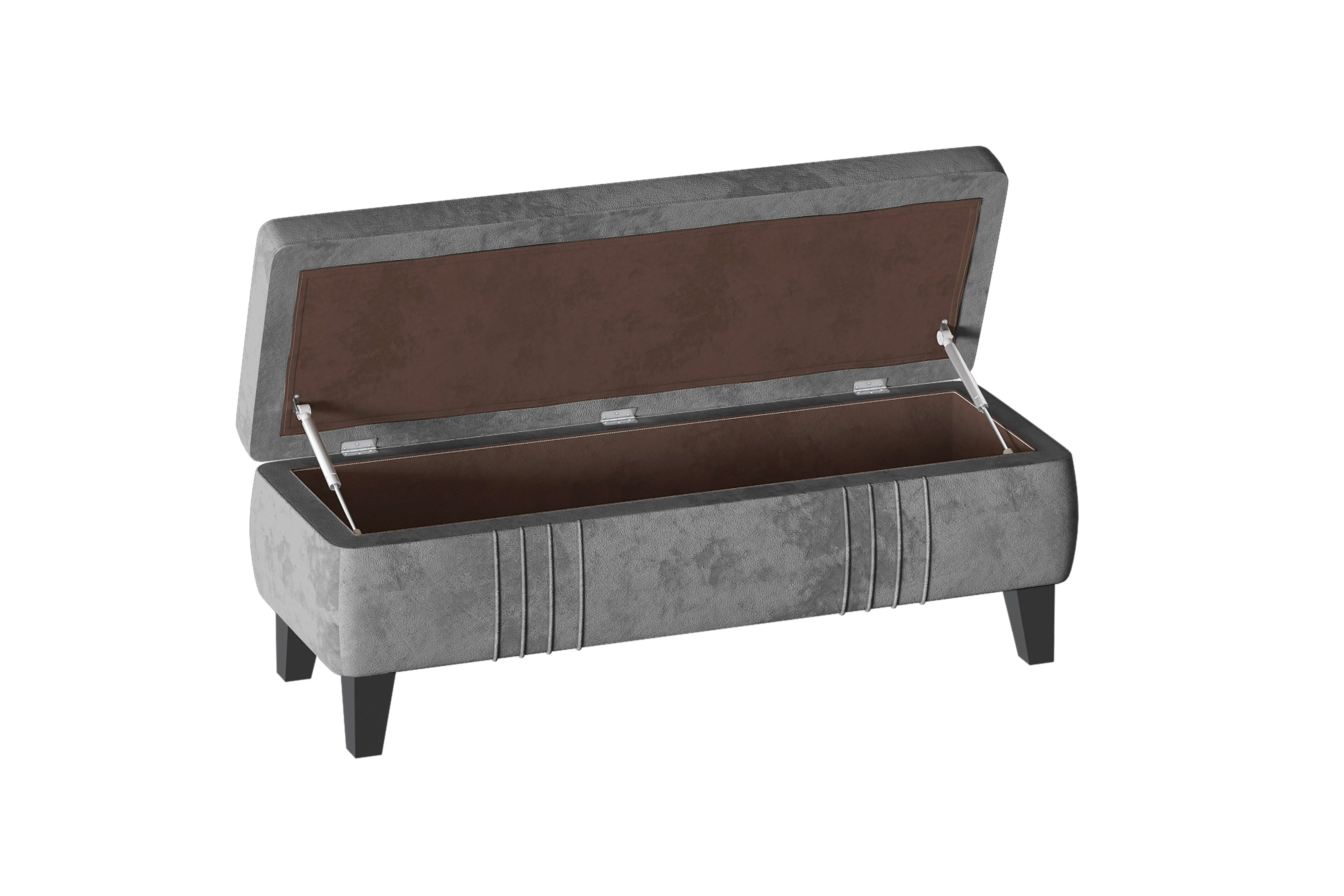 Декоративная отстрочка по высококачественному велюру добавляет приятный объем и украшает изделие. Опоры выполнены из массива берёзы, покрыты прозрачным лаком и имеют защитные войлочные наклейки. Банкетка хороша не только в спальне, но и в гостиной, на кухне и в детской комнате. Максимальная нагрузка 110 кг.
