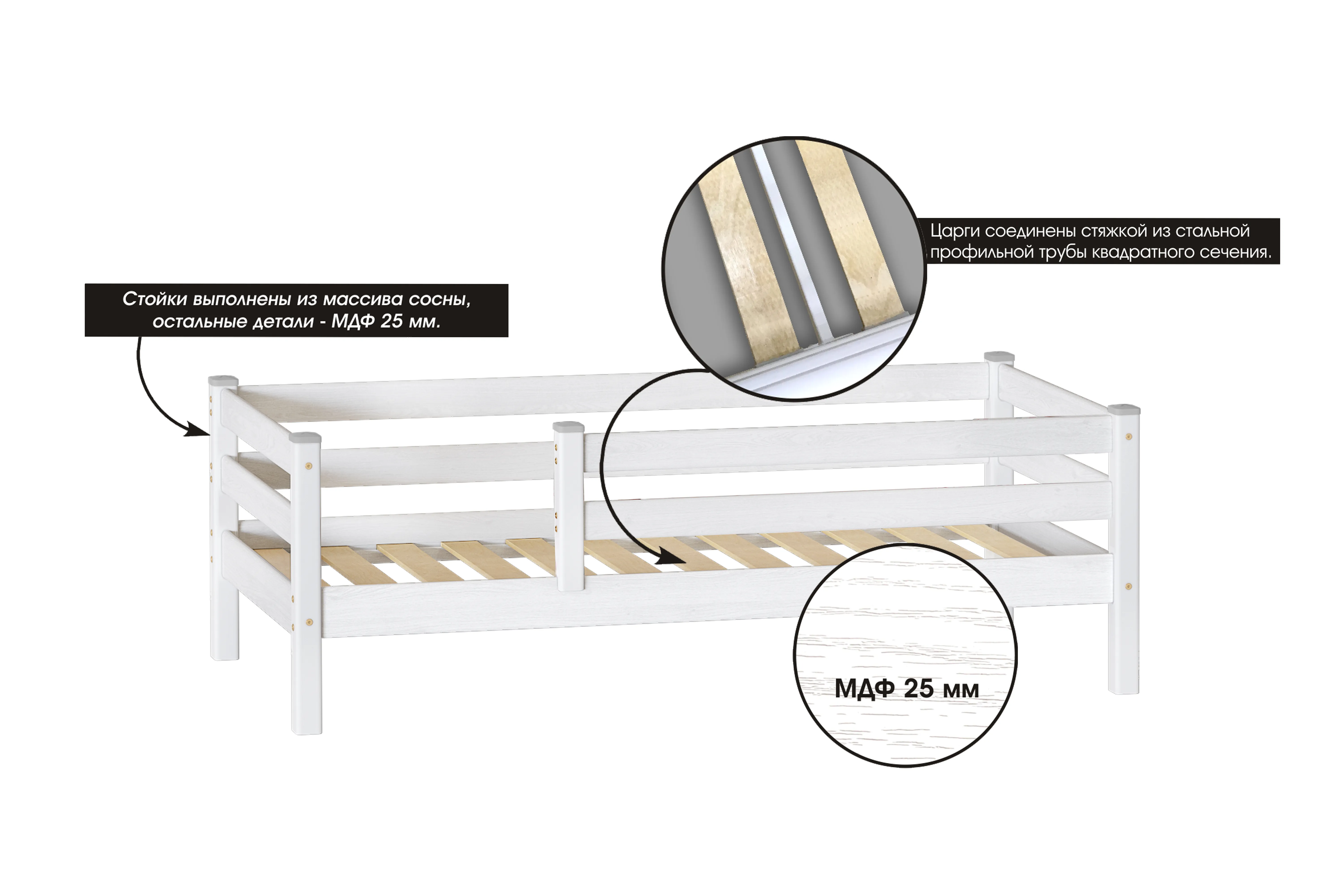 Кровать имеет стильный и современный дизайн, впишется в любой интерьер детской комнаты. Конструкция предусматривает наличие удобных бортиков, которые обеспечивают безопасность ребенка во время сна.