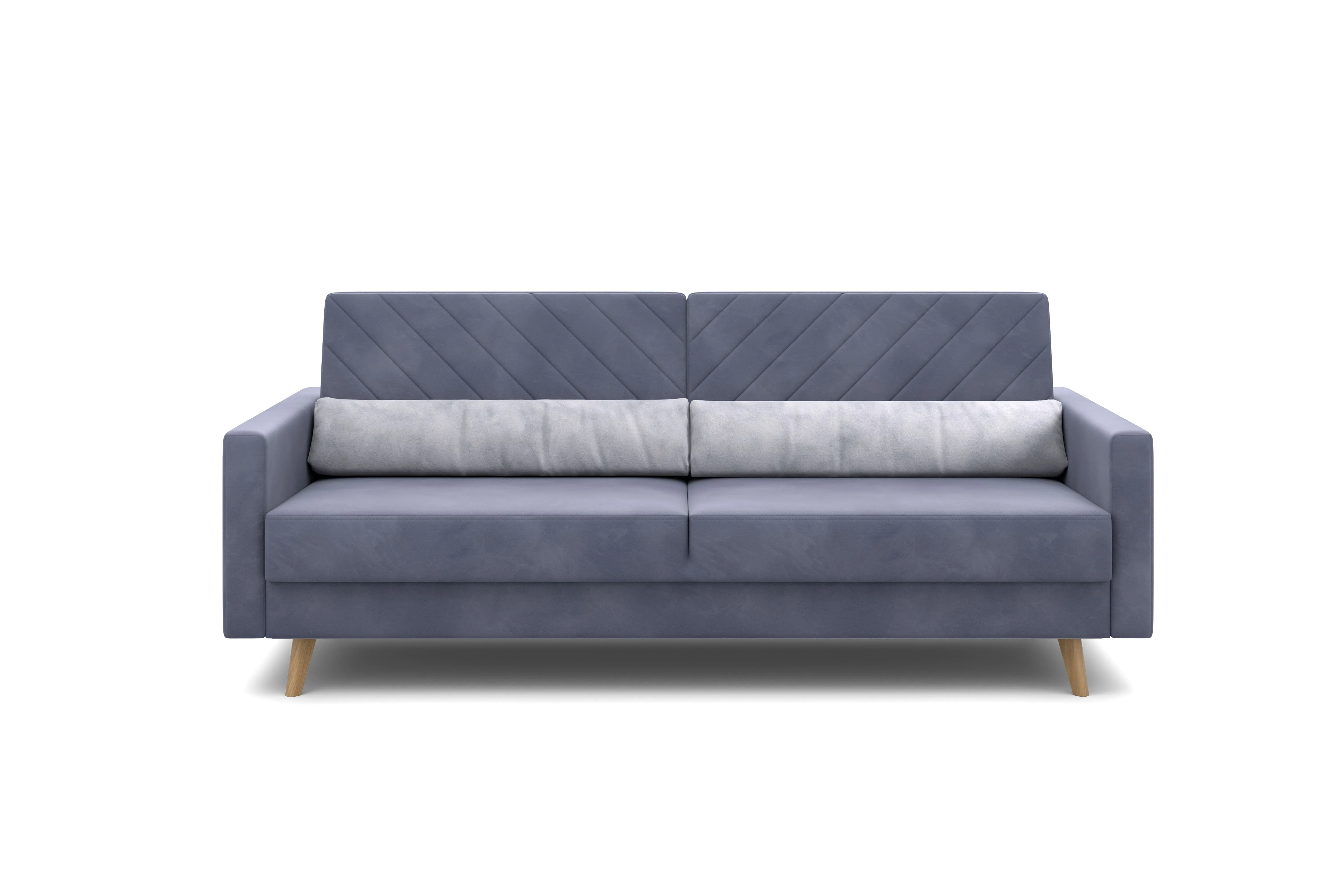 Обивка из велюра не только роскошно выглядит, но еще и практична в эксплуатации, а также имеет отличные показатели износоустойчивости.Высокие опоры из массива березы придают дивану визуальную лёгкость, декоративная отстрочка на подушках и боковинах придают приятный объем. Подушки из велюра контрастного цвета входят в комплект.
