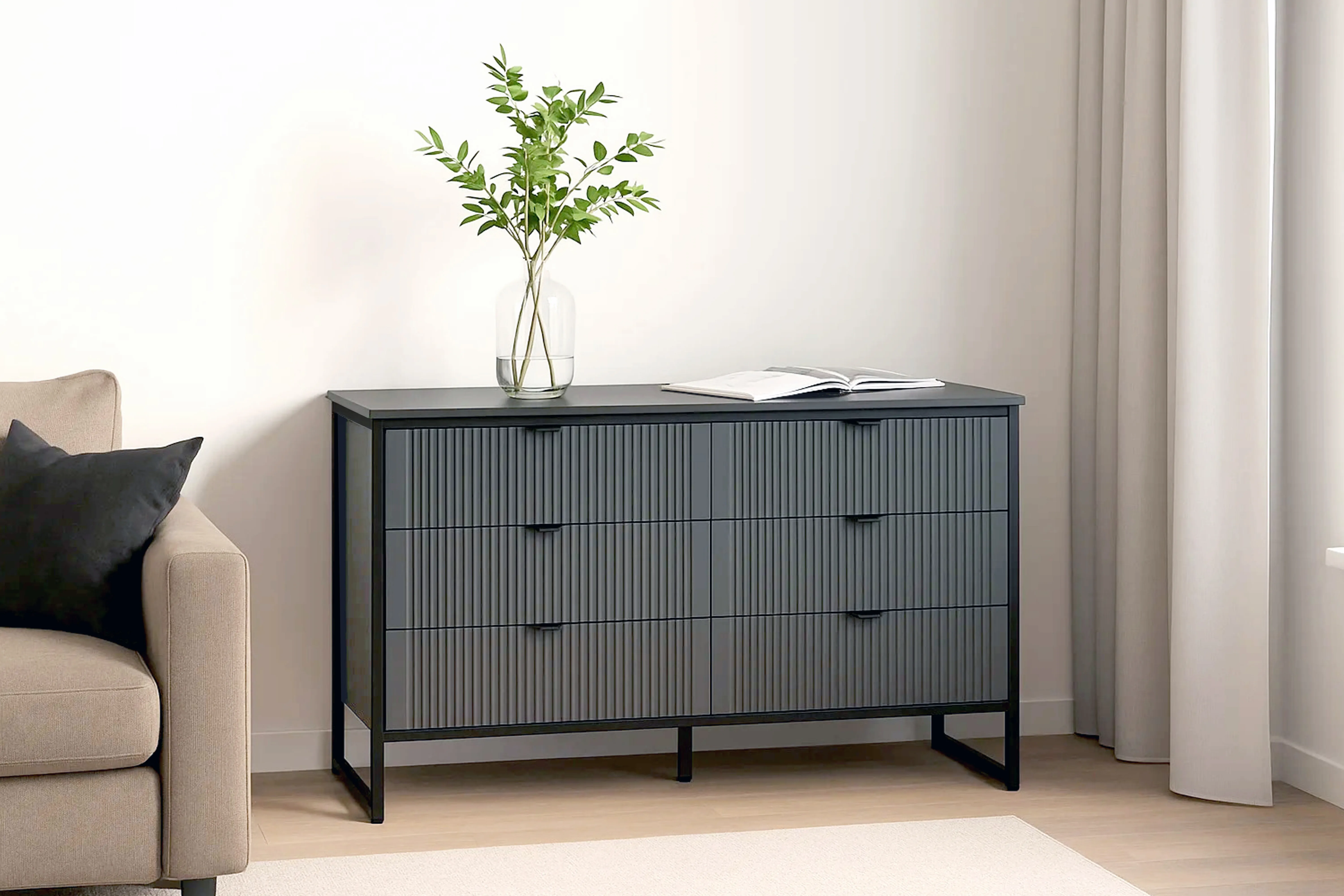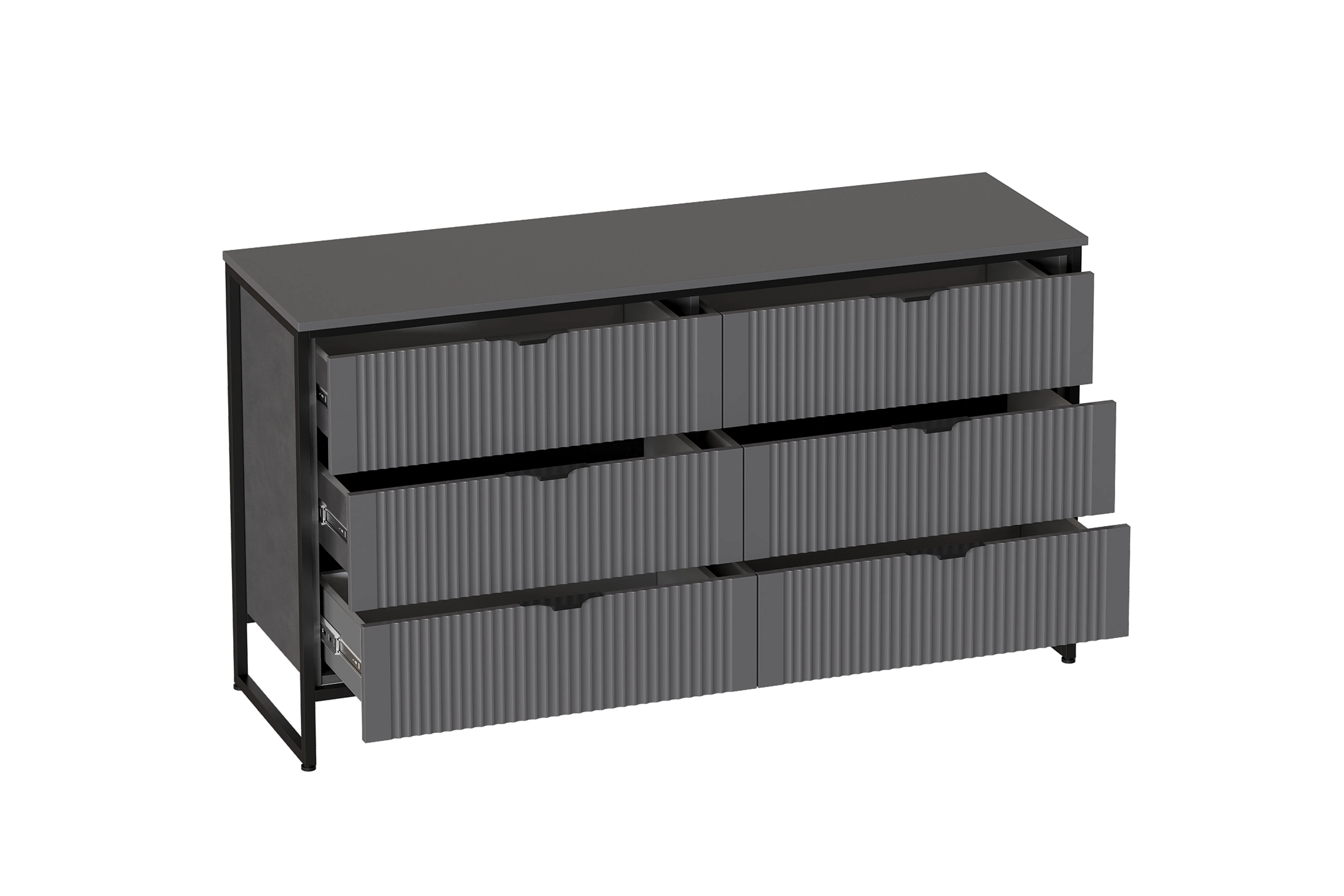 Комод выполнен в двух вариантах исполнения: Металл Бруклин / Графит и Персидский жемчуг / Персидский жемчуг.