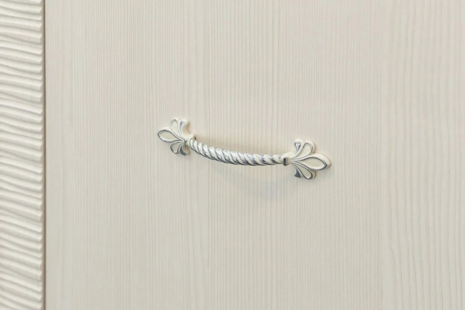 Отличительная черта серии "Элана" - вертикальные рифленые накладки на фасаде шкафа.