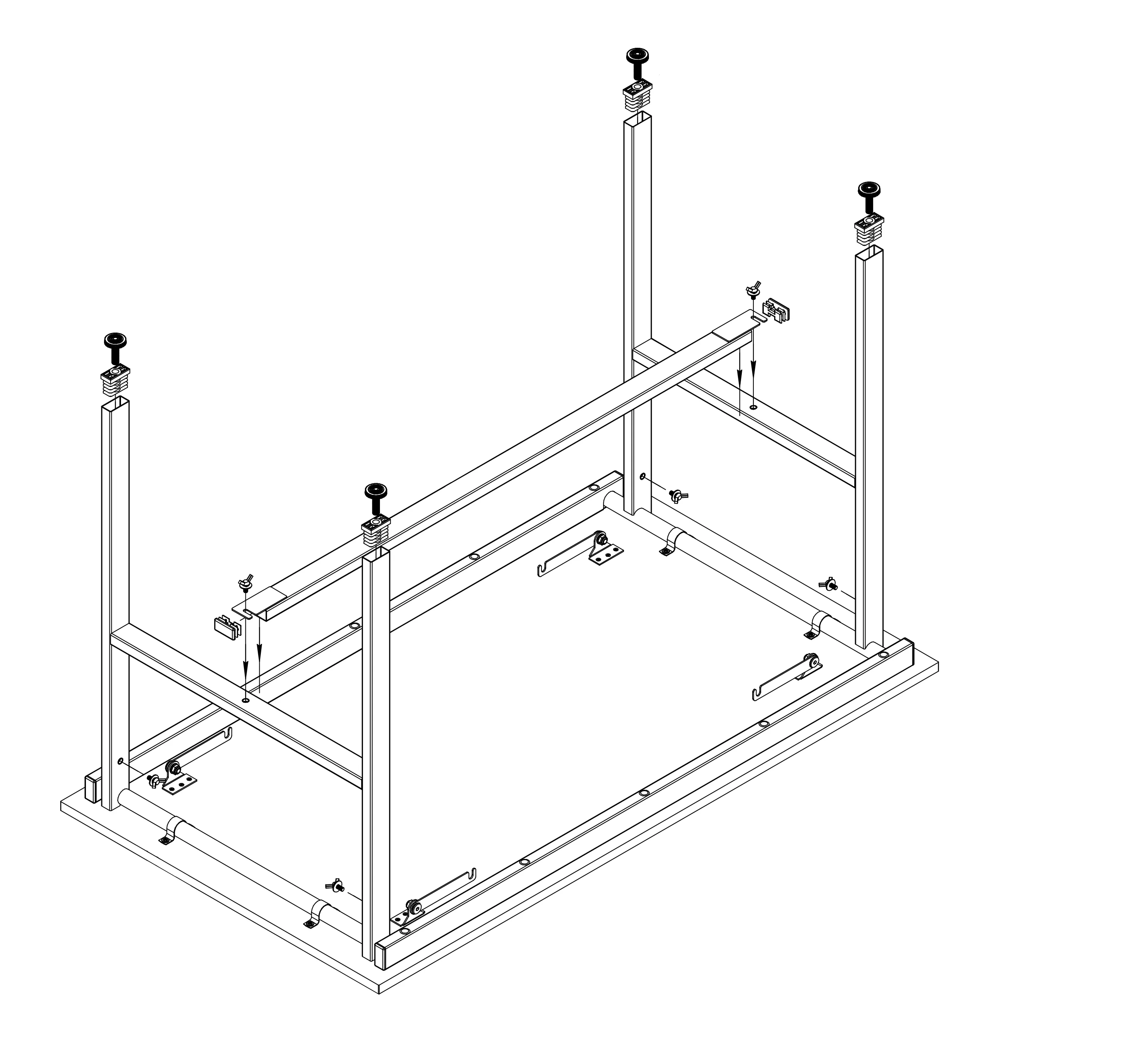 Раскладной стол "Брион 1" с прямоугольной столешницей.  Опорами служат две раскладных металлические рамы, соединённые между собой сборной / разборной поперечиной. Рамы фиксируются крючками и затягиваются  несъёмными винтами ("барашек"). Высота стола регулируется.
