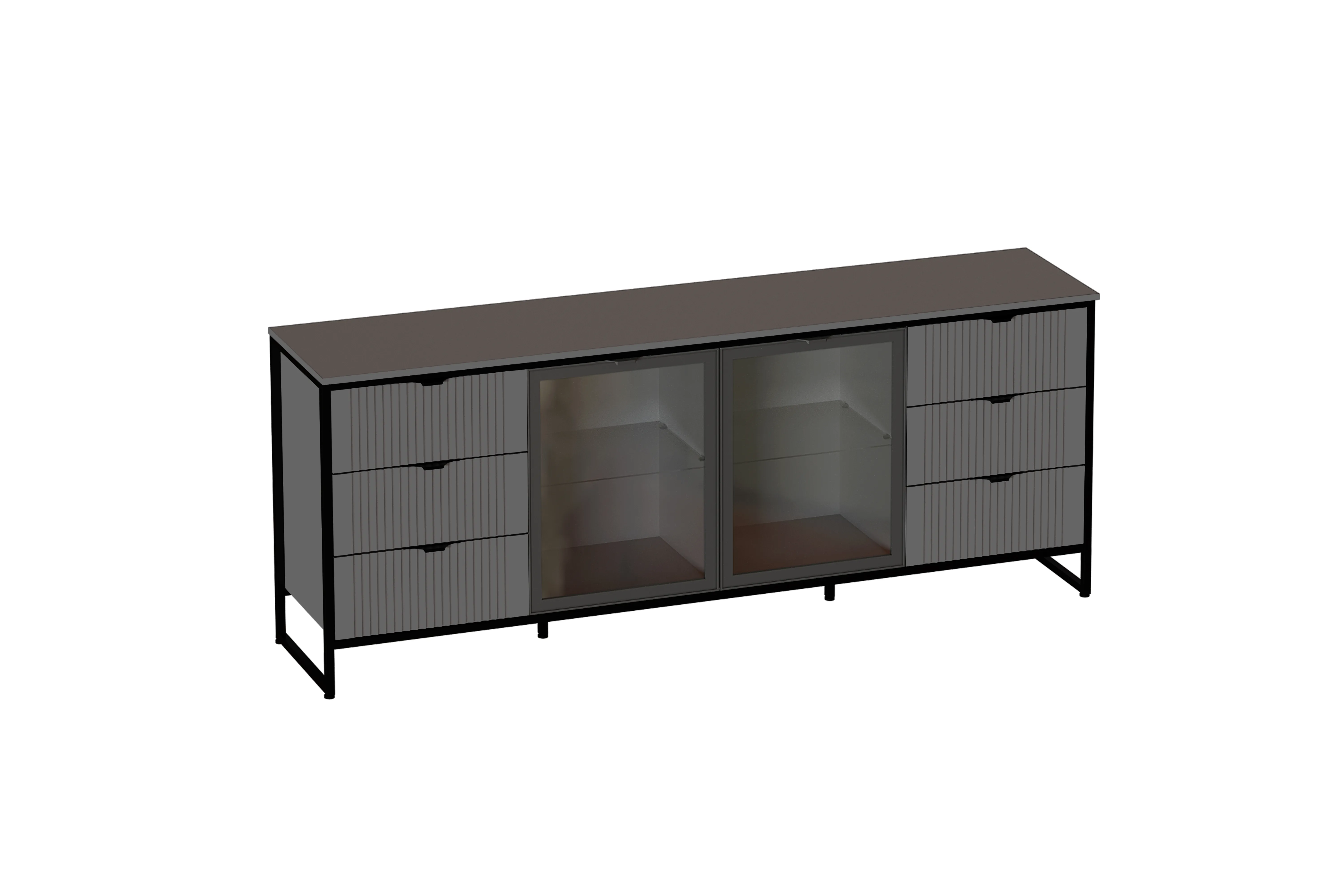 Коллекцию модульной гостиной "Нора" отличает современный оригинальный стиль. Декоративная продольная фрезеровка на фасадах из МДФ и опоры на металлокаркасе цвета соответствуют модным тенденциям этого года в ведущих зарубежных коллекциях.