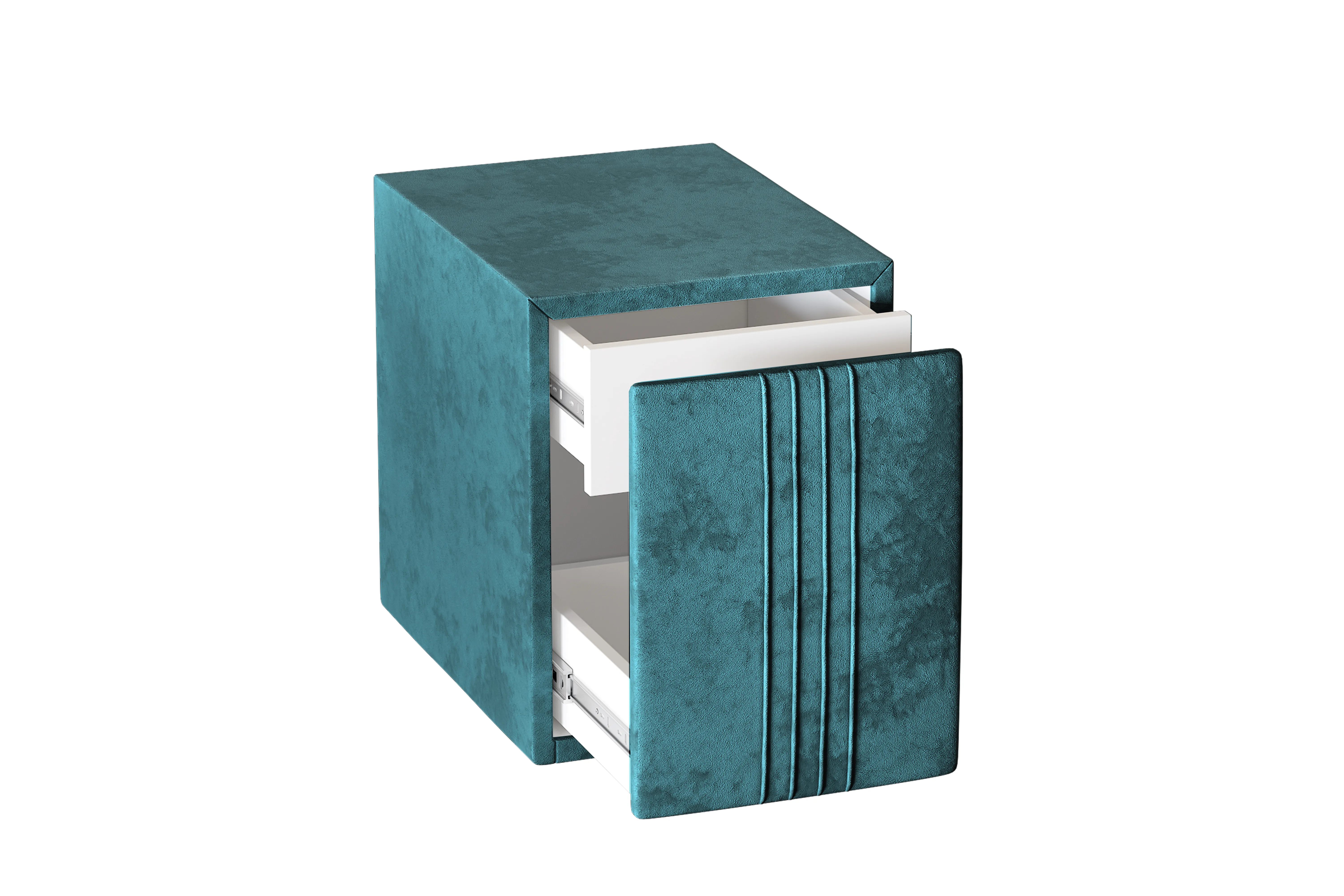 Тумба обтянута высококачественным велюром, имеет два вместительных выдвижных ящика с механизмом push to open. Скругленные торцы модели, минимизируют риск удариться в темноте.