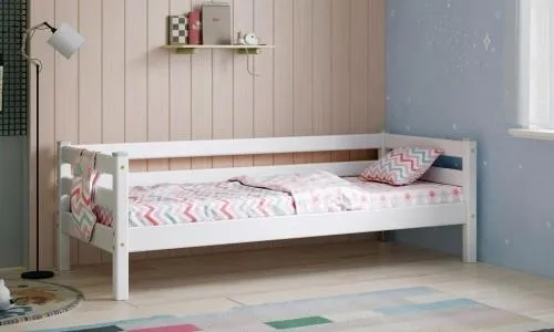 Вариант 2. Кровать "Соня" с задней защитой — один из примеров идеального сочетания практичности, оригинальности и долговечности. Цветовое исполнение подходит сразу для нескольких стилей, а габариты — для комнат разной площади. Мебель для детской создается из безопасных материалов с отличной износостойкостью.