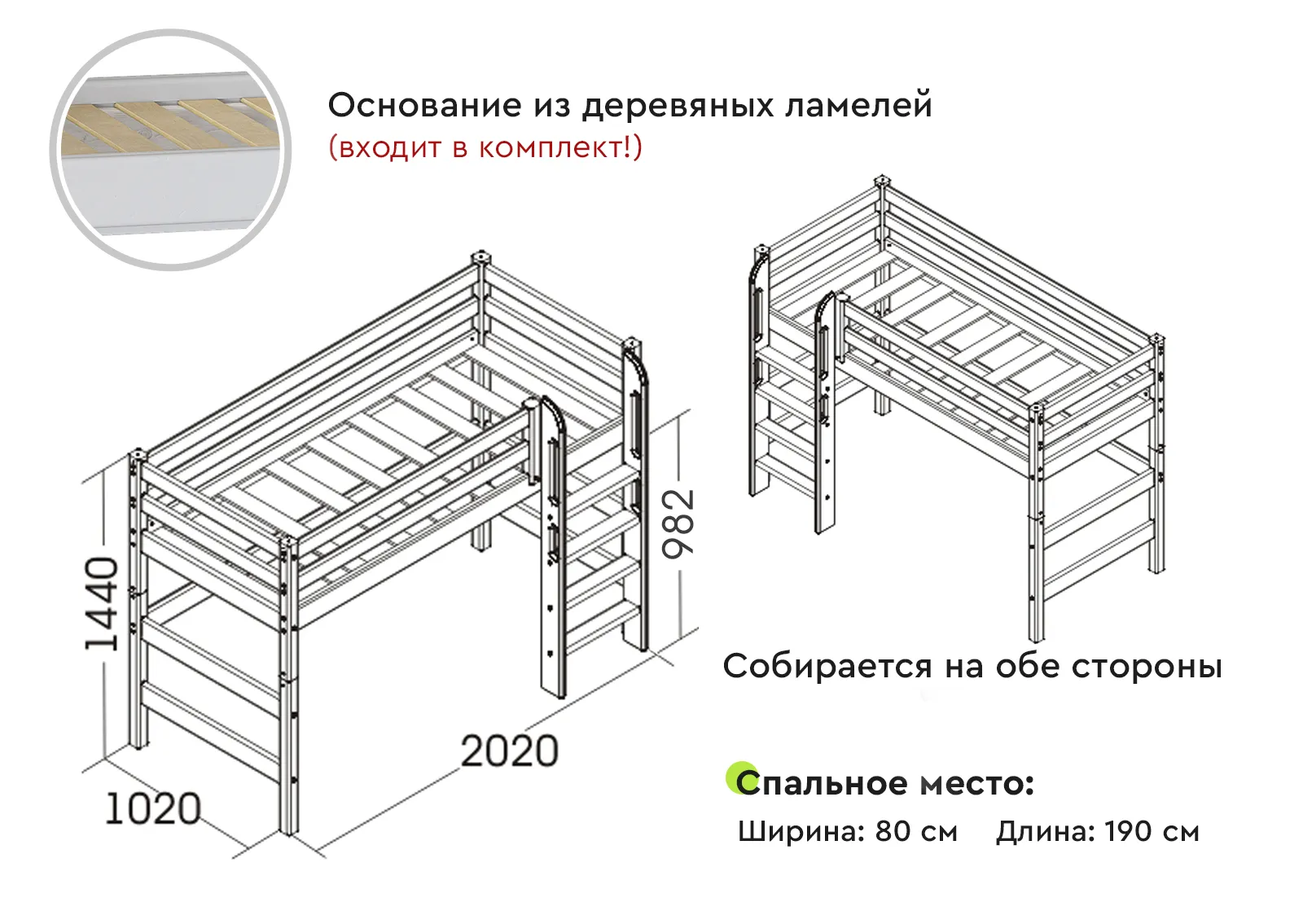 Вариант 5 Полувысокая кровать "Соня" с прямой лестницей