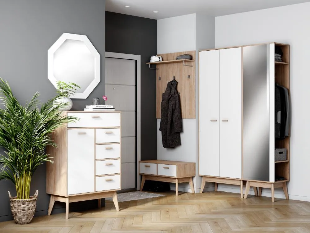 Обрамление зеркала выполнено в виде оригинальной рамы восьмиугольной формы из белоснежного МДФ, который нуждается в минимальном уходе и всегда выглядит нарядно. Вы можете использовать зеркало как отдельно, так и в комплекте с комодом "Калгари" или тумбой "Калгари" для прихожей.